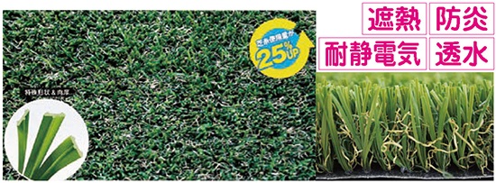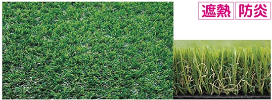 特徴:4色の糸を使用することにより本物そっくりの人工芝。上質な手触り。適度なボリューム感。ナチュラルな色合い。遮熱成分配合により表面温度の上昇を抑制します。
